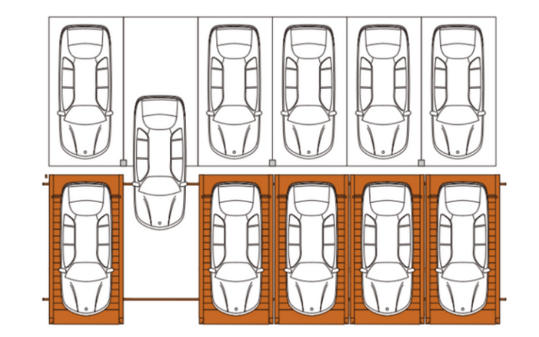 Platforma przesuwna, która wykorzystuje każdą możliwą przestrzeń parkingu, aby zapewnić maksymalną liczbę miejsc parkingowych. Przesuwając się w bok platformy pomagają tworzyć dodatkowe miejsca parkingowe przed istniejącymi miejscami, za kolumnami lub w narożnikach. Można nimi łatwo sterować aby utworzyć ścieżkę dla przestrzeni z tyłu. Stosując takie rozwiązanie można montować wiele rzędów, aby znacznie zwiększyć wykorzystanie przestrzeni.